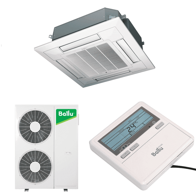 Кассетные кондиционеры Ballu – полупромышленные сплит-системы, рассчитанные на помещения большой площади (торговые центры, складские комплексы, промышленные предприятия). Они отличаются высокой мощностью, универсальностью крепления и установки, долговечны в использовании. Системы серии BLC_C соответствуют высокому классу энергоэффективности А (ГОСТ Р 55012-2012, EN 14511).