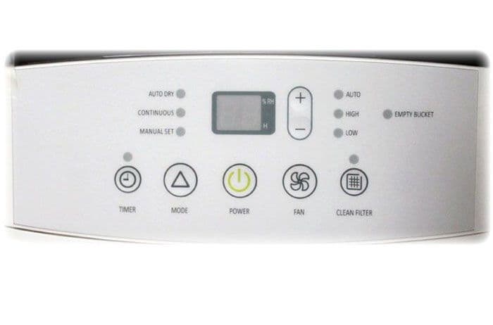 Точное управление процессом осушения воздуха и максимальное удобство прибора обеспечивают система контроля уровня влажности (от 30% до 80%) и большой бак для сбора конденсата в фронтальной части корпуса.